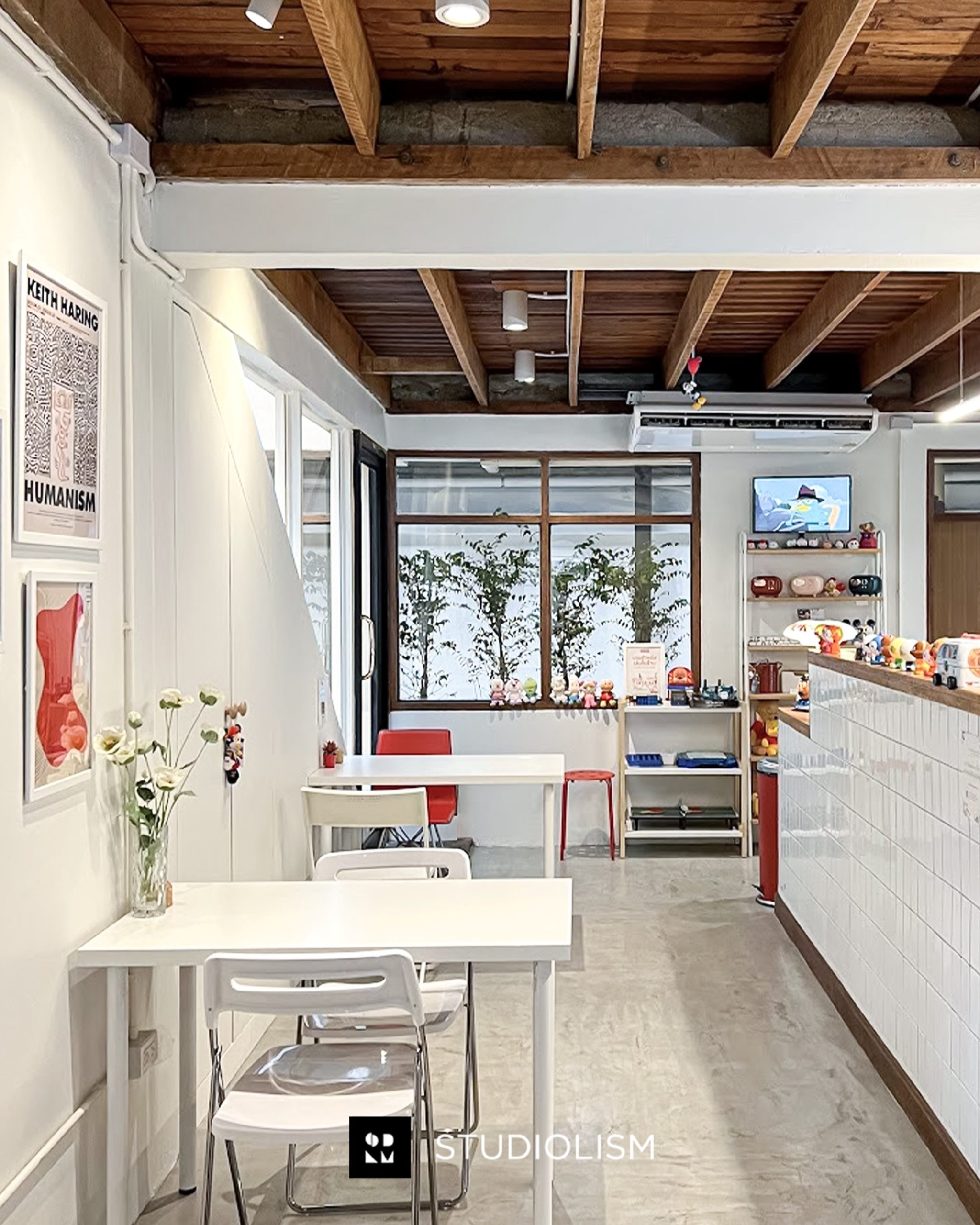 งานออกแบบร้านกาแฟนี้เป็นการปรับปรุงอาคารบ้านเดิมใจกลางเมือง โดยผู้ออกแบบได้นำจุดเด่นของวัสดุและโครงสร้างไม้เดิมมาผสานกับการตกแต่งด้วยเฟอร์นิเจอร์โทนสีขาวเพื่อสร้างบรรยากาศที่อบอุ่นและเป็นมิตรแก่ผู้ใช้งานนอกจากนี้ยังใช้กระเบื้องเซรามิกประกอบร่วมกับไม้เดิม เพื่อเสริมความรู้สึกของบ้านดั้งเดิมและเพิ่มมิติให้กับพื้นที่