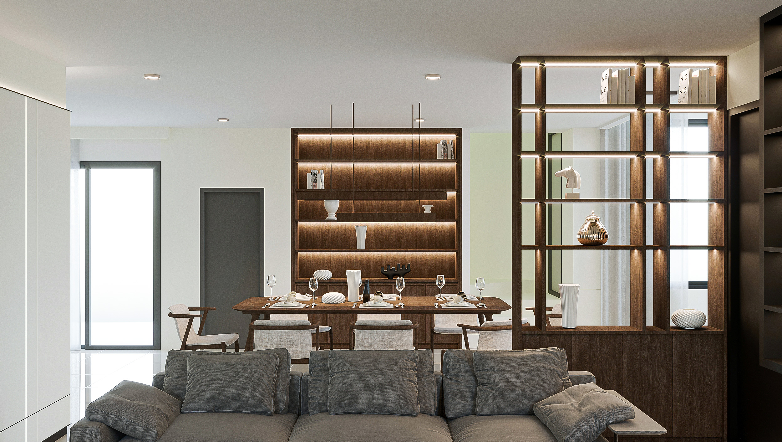 FERRARI_H interior design is based on the Modern Elegance concept, combining materials, subtle details, and thoughtful spatial planning to create a contemporary living environment. The design balances modern sophistication with warmth and comfort, resulting in a welcoming space that supports everyday living for everyone in the home.