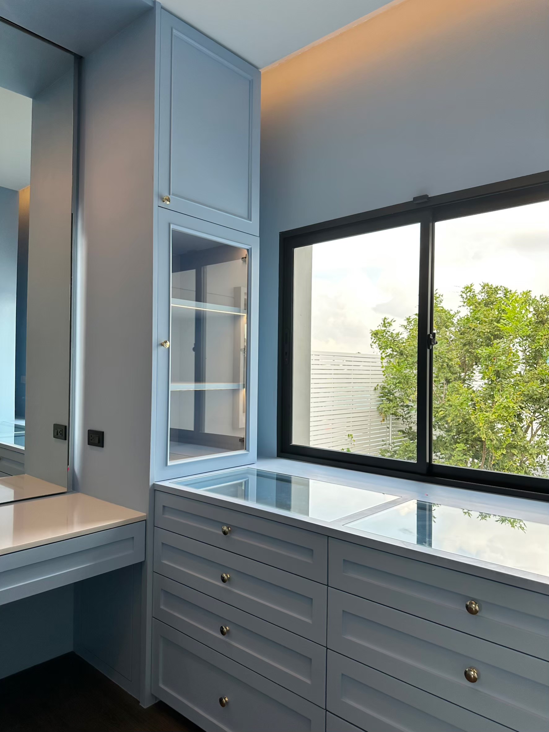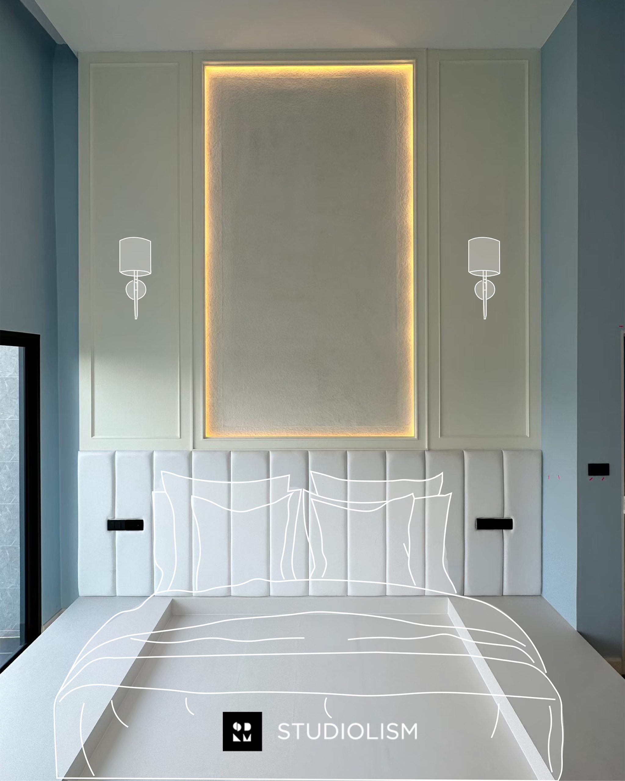 งานออกแบบตกแต่งภายในบ้านพักอาศัยส่วนบุคคลหลังนี้มีจุดเริ่มต้นจากการถ่ายทอดแนวคิดผ่านโทนสีฟ้า ซึ่งเป็นสีที่เจ้าของบ้านชื่นชอบ โดยผู้ออกแบบเชื่อมโยงระหว่างรูปแบบ โทนสี และการใช้งานของพื้นที่เข้าด้วยกันอย่างลงตัวด้วยแนวคิดที่สื่อถึงการอยู่อาศัยแบบหรูหราร่วมสมัย การออกแบบจึงมุ่งเน้นการลดทอนรายละเอียดให้เรียบง่ายมากยิ่งขึ้น ขณะเดียวกันยังคงบรรยากาศที่นุ่มนวล อบอุ่น และสบายแก่ผู้อยู่อาศัย