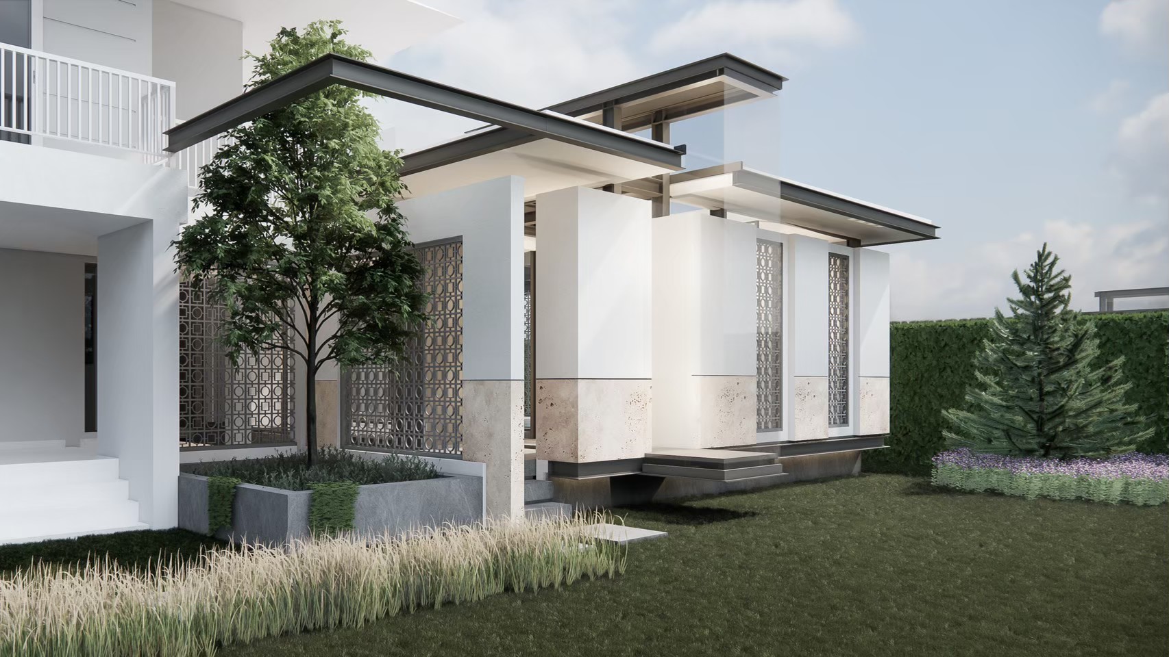 Since a home is not merely a private space, the project owner desired additional areas for social gatherings, including an integrated swimming pool. The designer responded by creating a memorable architectural feature with a glass-like form at the building’s façade, making the structure both striking and recognizable. Furthermore, the interior layout of the extended building was carefully organized to separate public and private spaces, ensuring that a variety of activities could be accommodated while providing functional and comfortable spaces for all users.