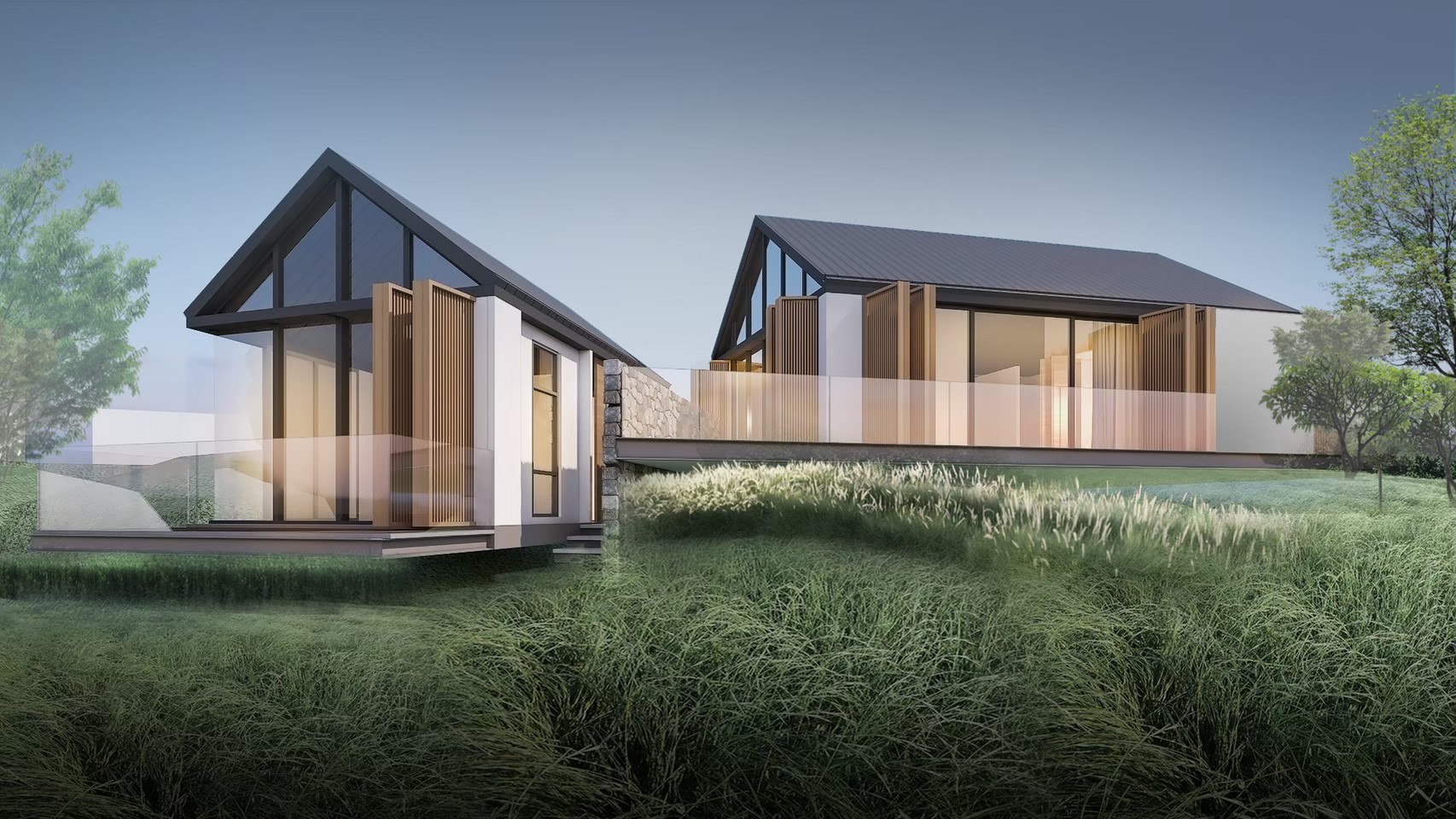 บ้านพักตากอากาศหลังนี้ผู้ออกแบบนำเสนออาคารสไตล์นอร์ดิก ผสานกับวัสดุและรูปทรงที่เรียบง่าย โดยจัดวางอาคารตามแนวแกนเฉียงเพื่อเปิดรับมุมมองวิวหน้าผาของพื้นที่ นอกจากนี้ การออกแบบยังจัดสรรพื้นที่ส่วนรวมและพื้นที่ส่วนตัวแยกจากกันอย่างชัดเจน เพื่อรองรับกิจกรรมที่หลากหลายได้อย่างเต็มประสิทธิภาพ