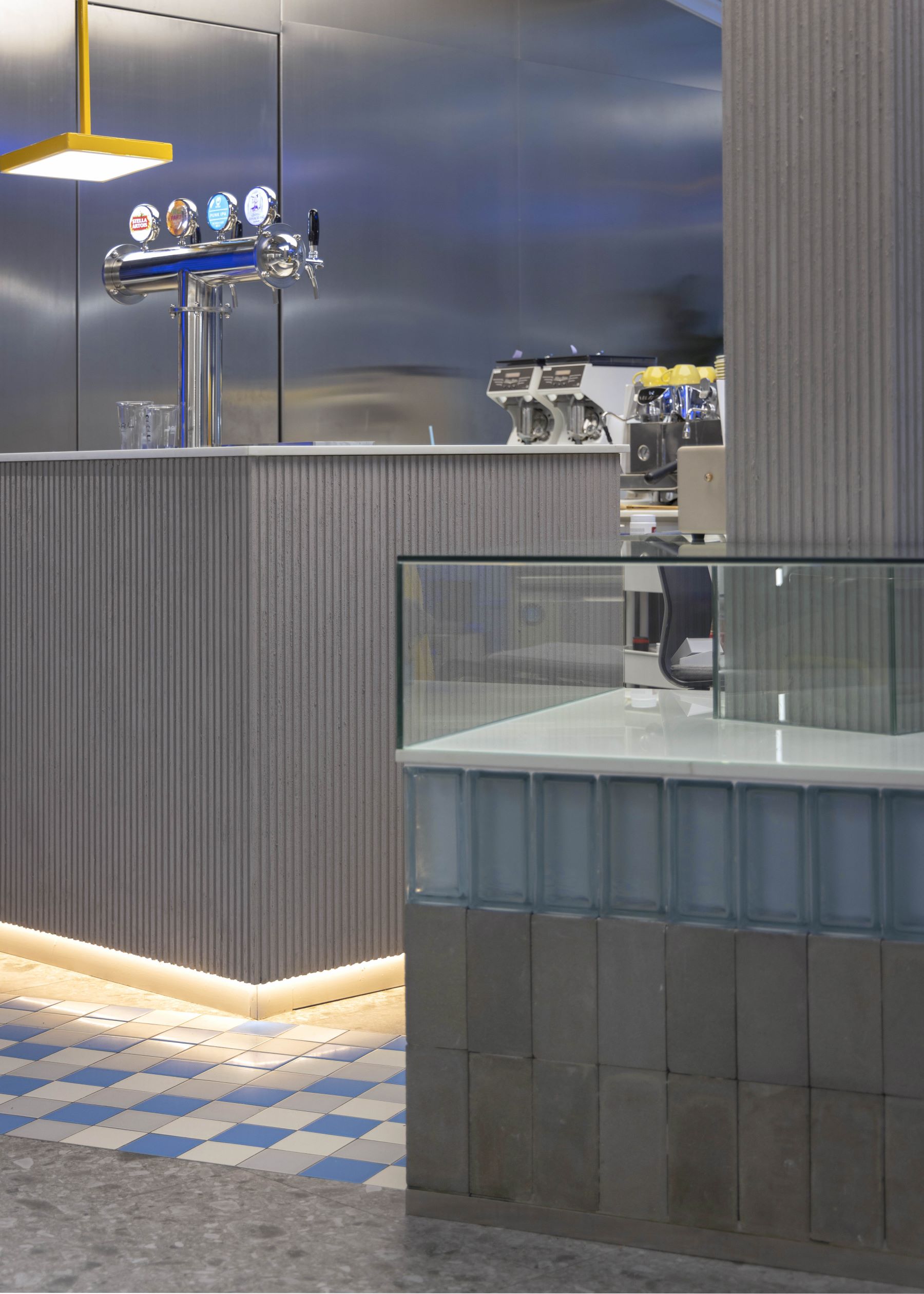 Inspired by the nostalgic charm of classic pixel games, the café is designed to be more than just a place to enjoy coffee. The concept emphasizes both aesthetics and functionality, seamlessly blending them into the overall experience. This vision is reflected in the spatial layout, color palette, geometric forms, and interior elements throughout the space. The second floor features an open-plan layout, allowing for flexible zoning and multi-purpose use, ensuring adaptability for future changes and diverse activities.