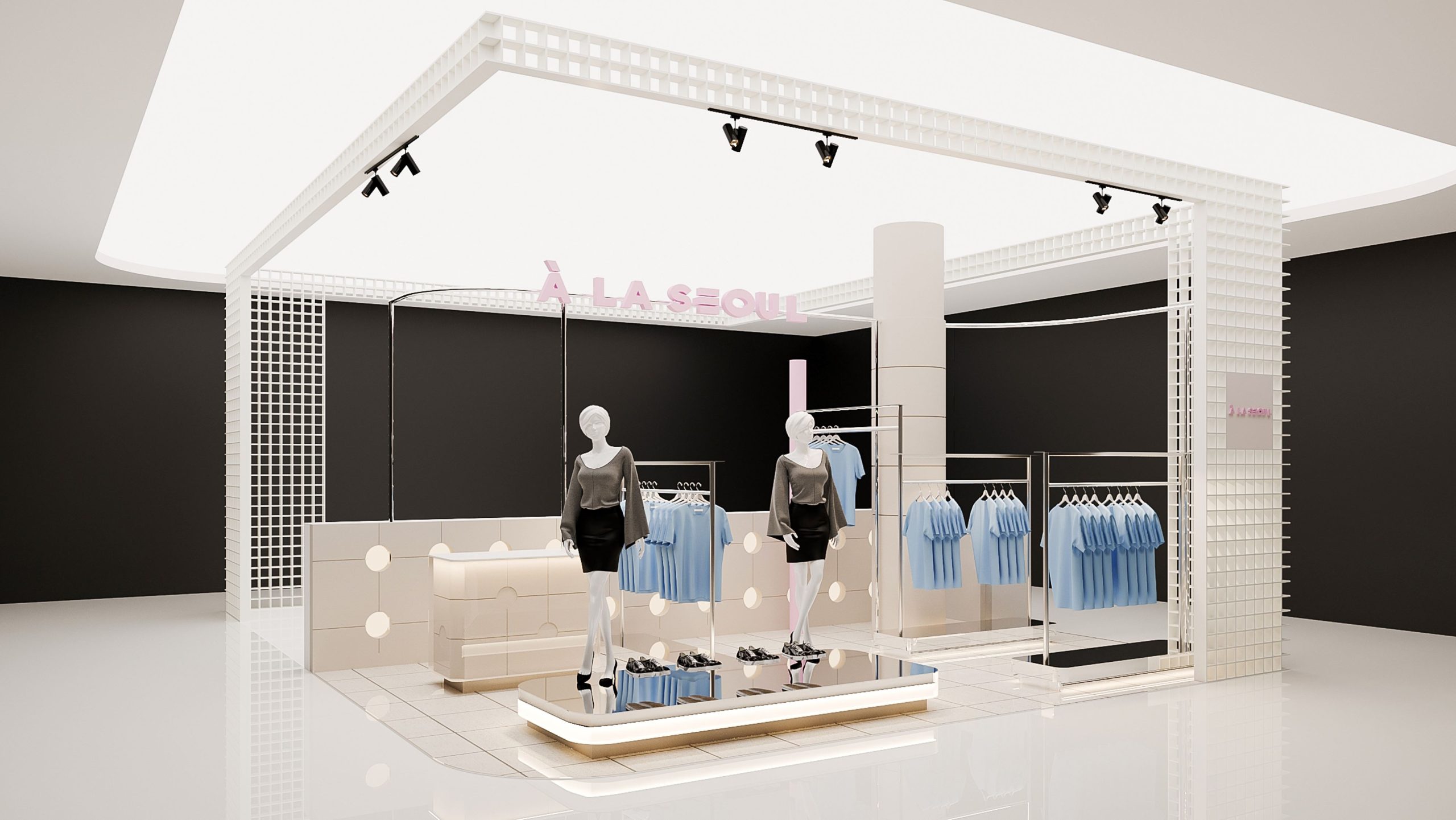 Seoul_Westville, clothing store design aims to create a distinctive and unique identity through a welcoming interior atmosphere. With limited space, the layout prioritizes accessible product displays, while bright colors and textured materials add depth and visual interest, attracting passersby within the shopping mall.